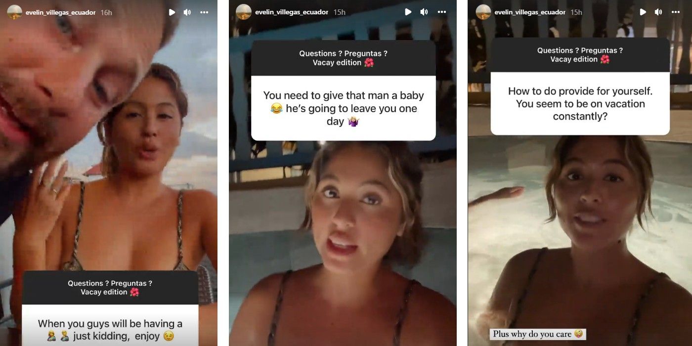 " Sé que algunas personas lo hacen, pero prefiero no hacerlo " , explicó Evelin. Sin embargo, alguien más le envió a Evelin un mensaje diciendo: “ Tienes que darle un bebé a ese hombre [o] él te dejará algún día. Esto hizo que Evelin se burlara del espectador del prometido de 90 días y agregara: “Eso es algo muy estúpido que decir. "Evelin continuó," ¿Qué? Él puede irse ". Le recordó a la fan que lo ha dicho " desde el principio " que no quiere tener hijos. “ Mi cuerpo, mi elección. Elijo no tenerlos. Así que lárgate de mi negocio ”, anunció Evelin.