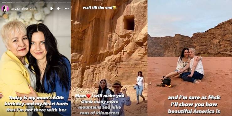 Le prometió a su madre, que todavía está en Rusia, que organizará " muchas, muchas más aventuras " para ellos en el futuro. Luego, Varya concluyó los mensajes de cumpleaños publicando imágenes de ella y su madre sentadas en las dunas. Escribió: " Estoy segura de que te mostraré lo hermoso que es Estados Unidos ". Varya felicitó a su madre por el gran día y compartió su foto con un ramo de flores en la última publicación de cumpleaños.