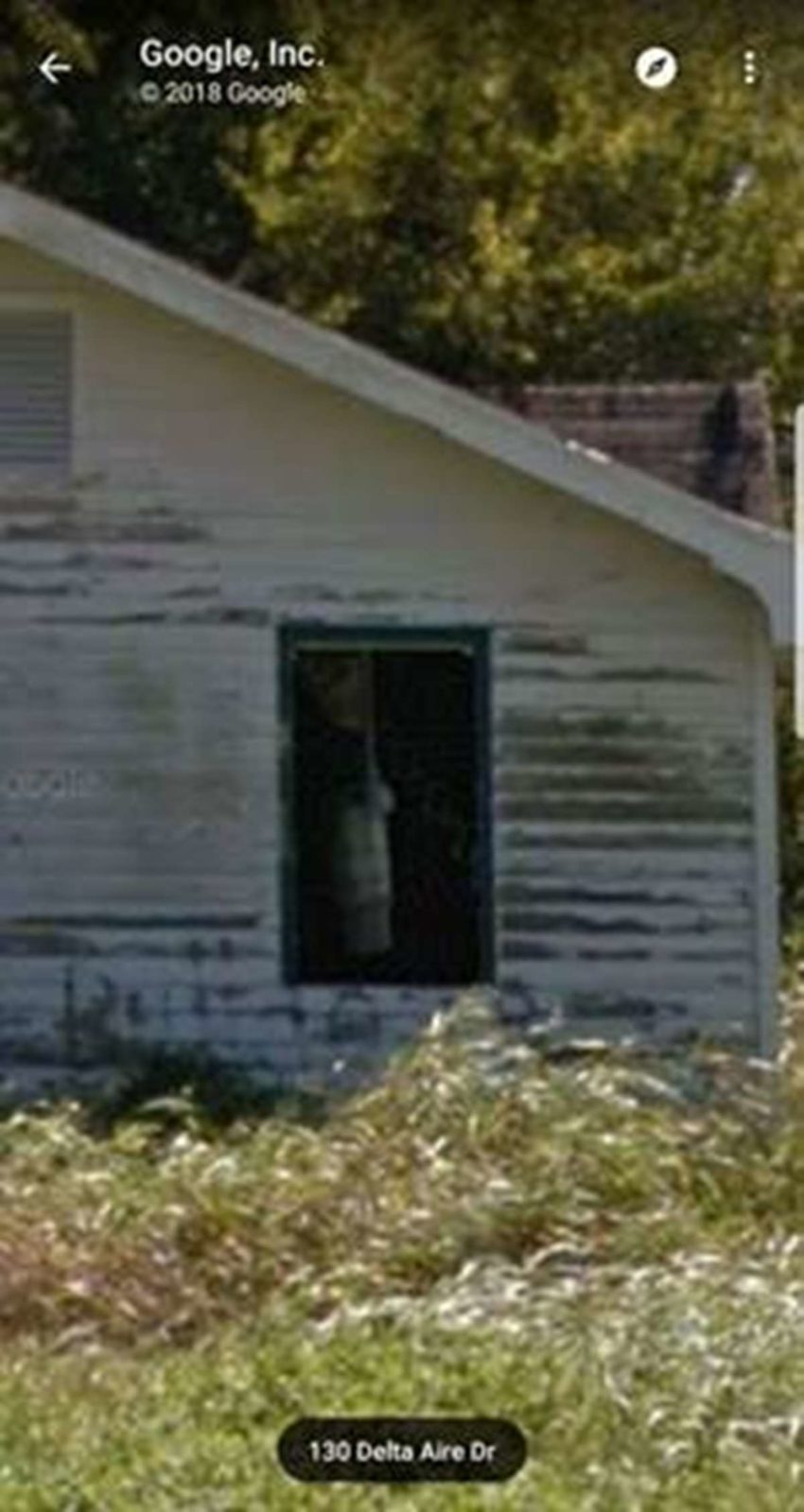 Esta vez, Google Maps, habría facilitado al buscador de imágenes curiosas, con nick de usuario FanTasmaN XandeR, una imagen escalofriante de un cuerpo vestido con una sábana o túnica blanca colgado del techo en una cabaña abandonada del pueblo de Buras, en Luisiana, Estados Unidos. El complemento de Google Maps, el Google Street View, con un zoom de la captura hizo sospechar al navegante por Google Maps que se trataba del cuerpo de un ahorcado.